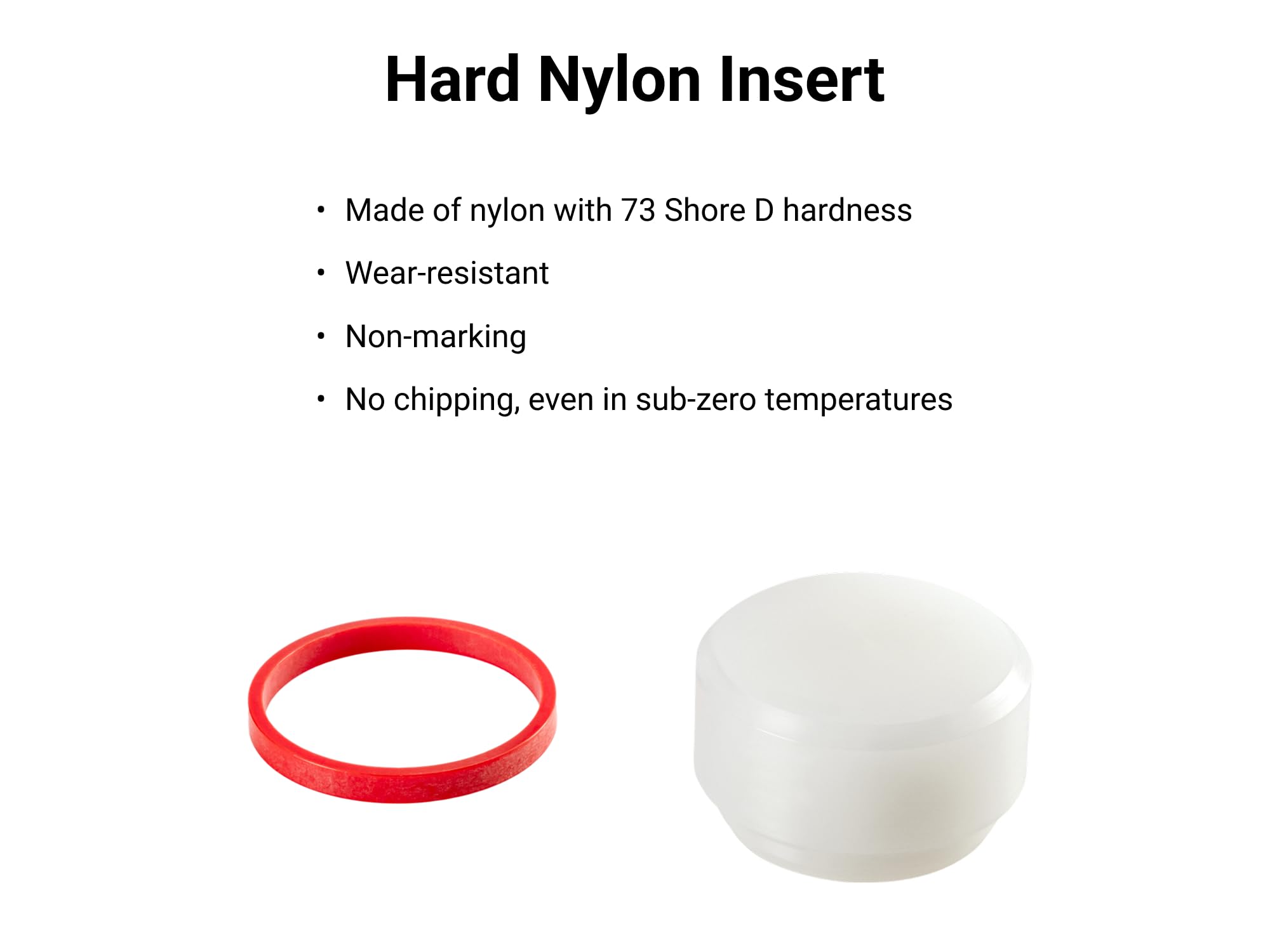 - Replaceable chip-resistant nylon insert with 73 Shore D hardness on the other side