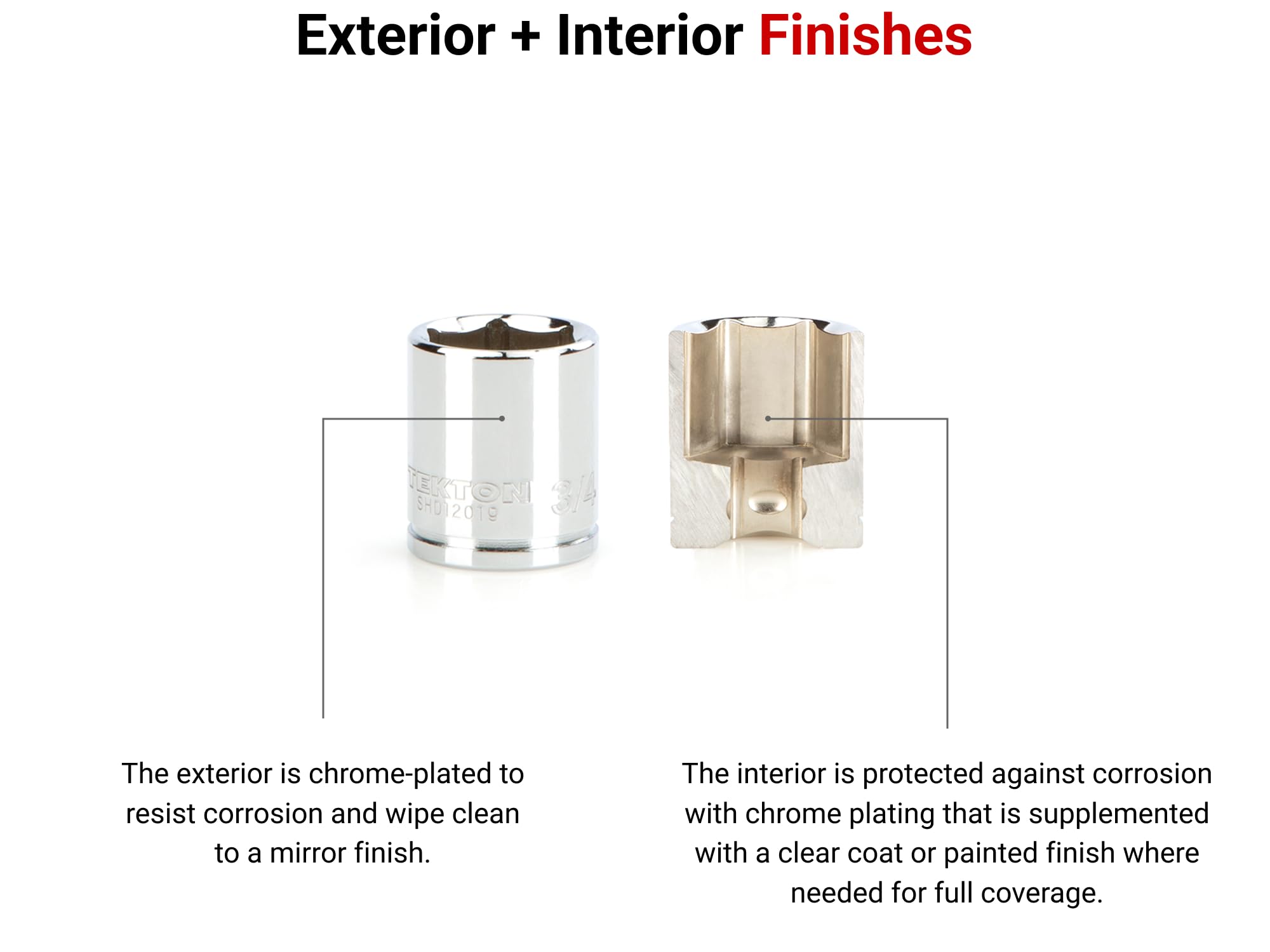 Exterior and Interior Finishes – The exterior is chrome-plated and the interior is chrome-plated and supplemented with a clear coat or painted finish where needed for full coverage