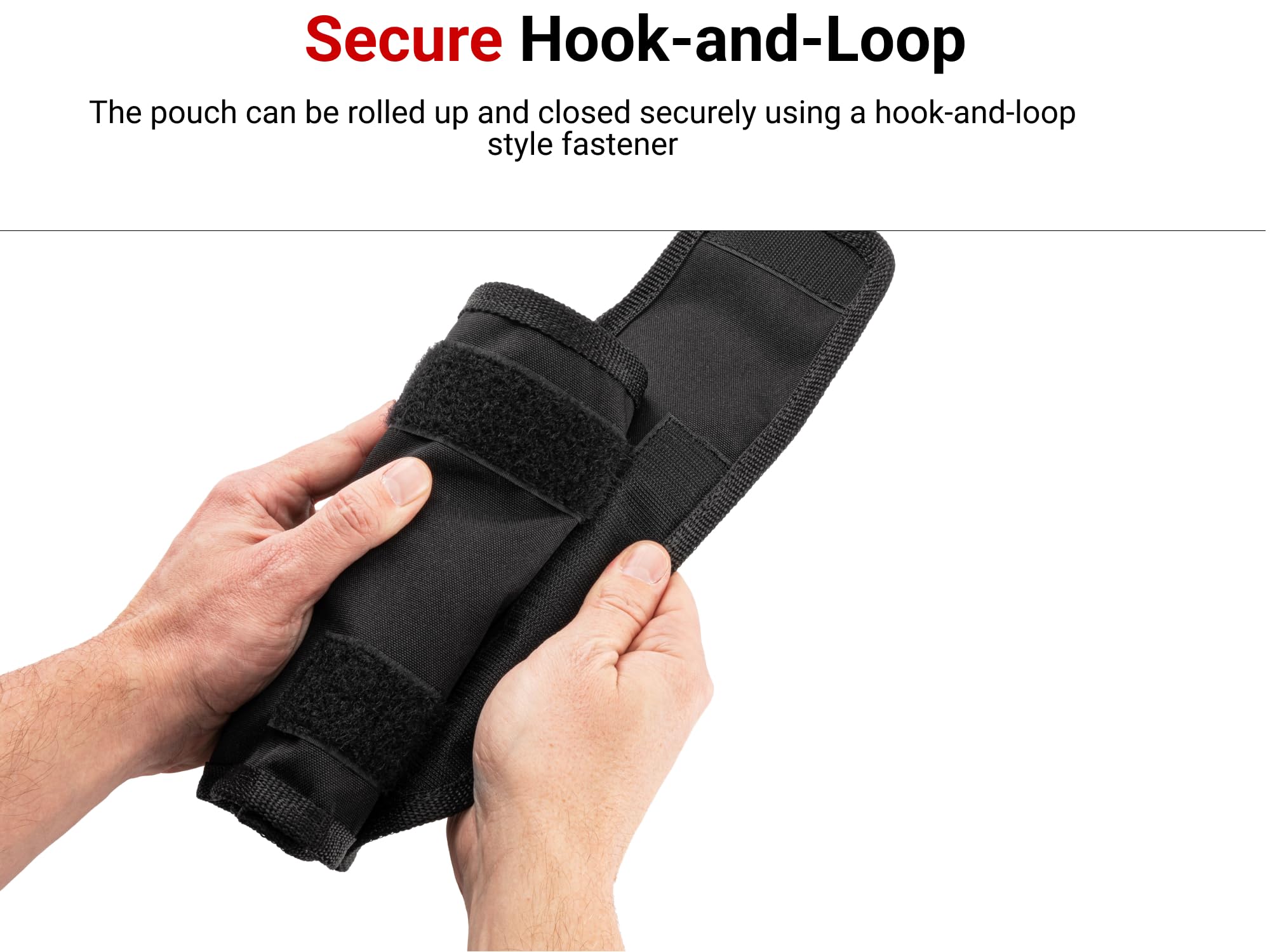- Secure Hook-and-Loop – The pouch can be rolled up and closed securely using a hook-and-loop style fastener