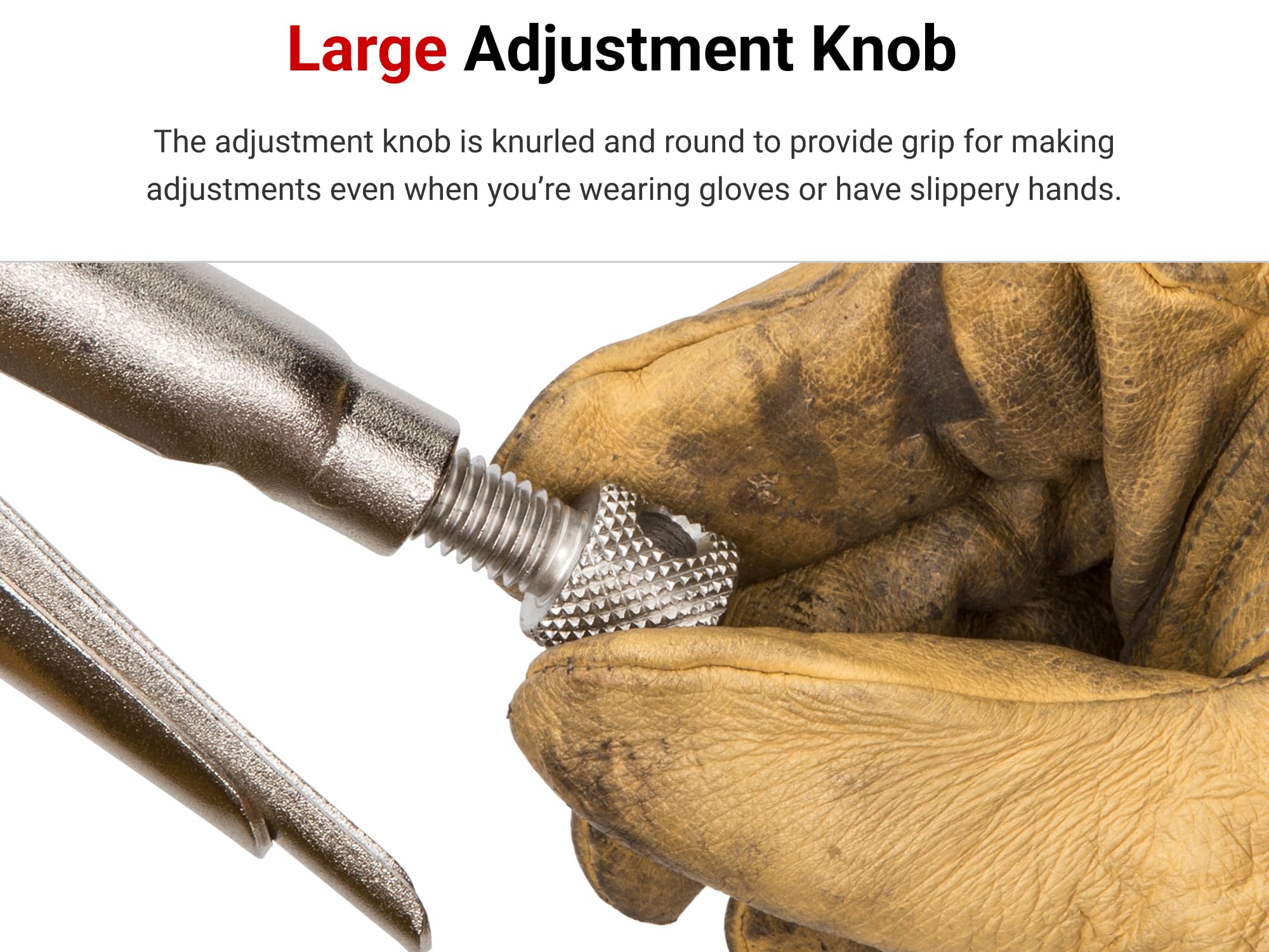 Large Adjustment Knob – The adjustment knob is knurled and round to provide grip for making adjustments even when you’re wearing gloves or have slippery hands