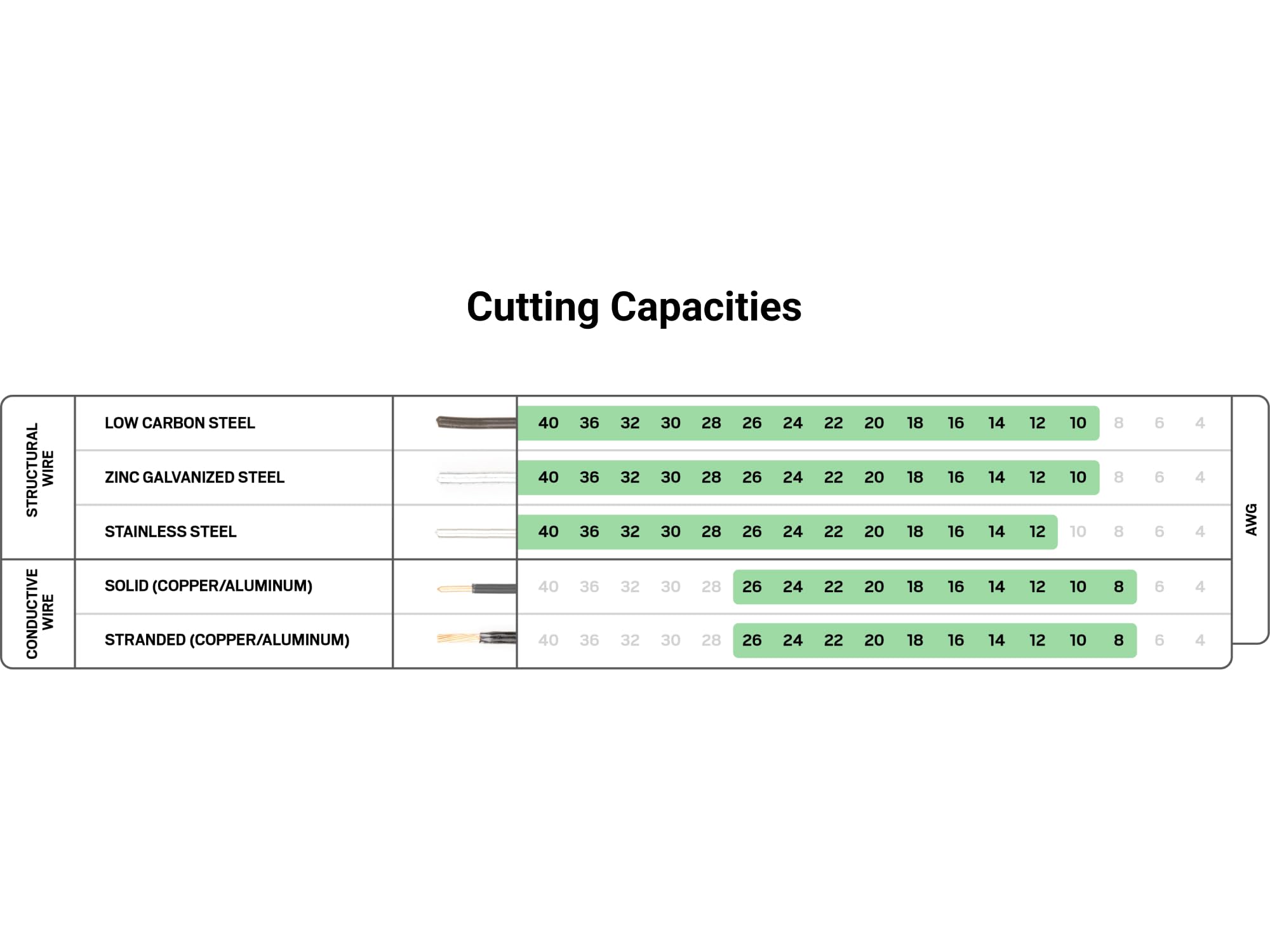 - Cutting Capacity for Copper Wire: 8 AWG